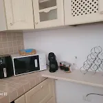 This 50 m^2 apartment is equipped with a full kitchen.